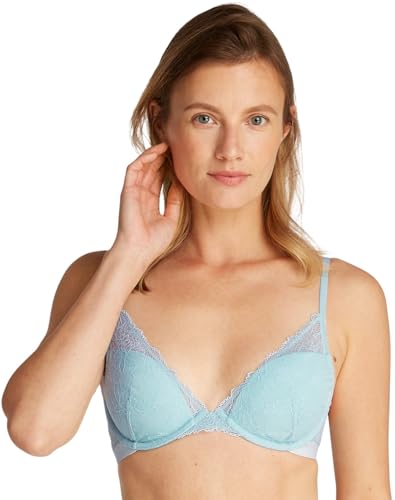 Calvin Klein Soutien-Gorge Pigeonnant Femme Lightly Lined avec Dentelle, Bleu (Stratosphere), 85C