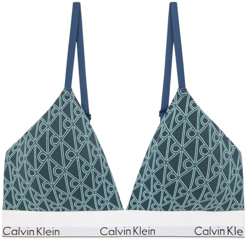 Calvin Klein Soutien-Gorge Triangle Femme Lightly Lined avec Basque Élastique, Vert (Bijou Modern Emblem Outline+Stratif), XS