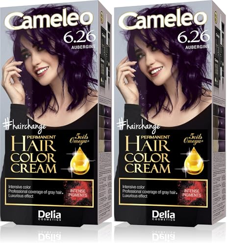 Delia Cameleo Crème colorante permanente avec oméga Plus Aubergine 6,26 (Lot de 2)