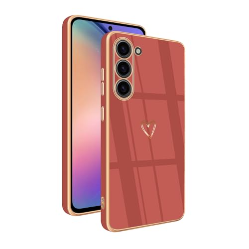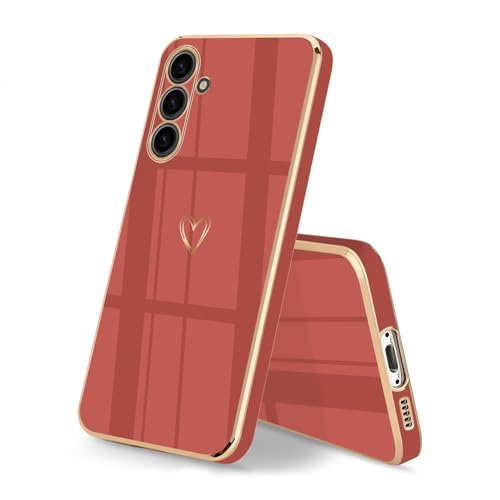 Teageo Coque Compatible avec Samsung S24 en Silicone TPU Galvanisé Or avec Motif Coeur d'amour Étui Antichoc pour Filles Femmes Housse de Protection pour Samsung S24, Camélia Rouge