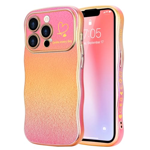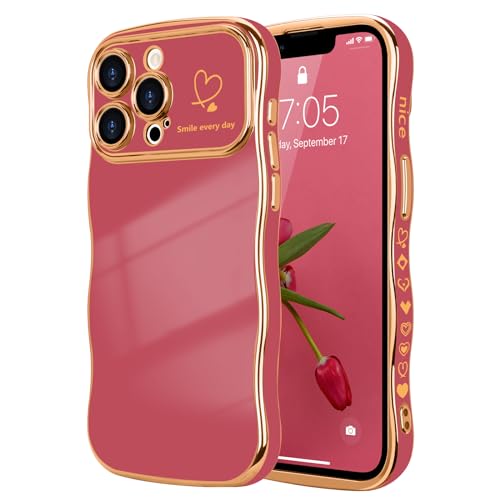 LCHULLE Coque Compatible avec iPhone 13 Pro Max Coeur Housse Forme Ondulée Bouclée avec Protection de Caméra Galvanisé Coque pour iPhone 13 Pro Max Rouge camélia