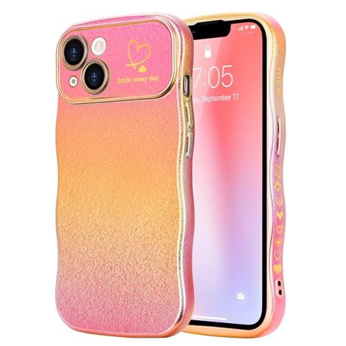 LCHULLE Coque Compatible avec iPhone 14 Coeur Housse Forme Ondulée Bouclée avec Protection de Caméra Galvanisé Coque pour iPhone 14 Rouge camélia