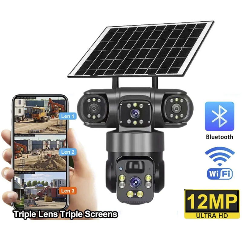 Caméra de sécurité WiFi, caméra de sécurité à énergie solaire, batterie 8000 mAh, couleur nocturne, triple caméra PIR à 360 degrés pour la maison ou