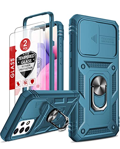 LeYi Coque pour Samsung Galaxy A33 5G avec 2 Verre Trempé, 360 Full Protection de la Caméra en PC Dur Anti-Chut Renforcée Armor Heavy Duty Antichoc Bumper Housse Etui pour Samsung A33 5G Bleu