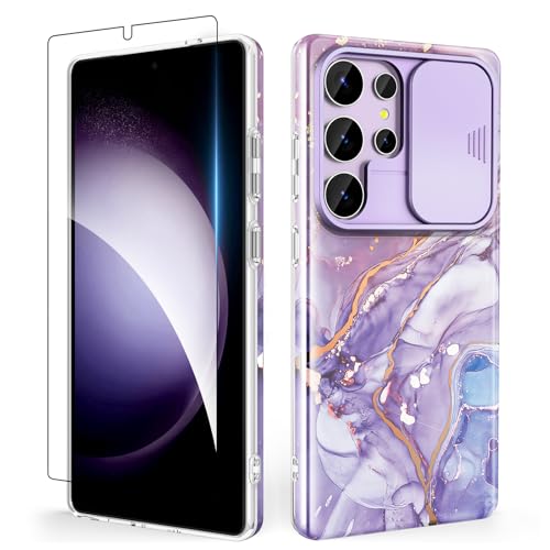 SHEDEER Coque pour Samsung S25 Ultra avec Coulissante Protection de la Caméra& Verre Trempé, Coque S25 Ultra IMD 3D Motif Double Face, 360 Protection Anti Choque,Light Violet