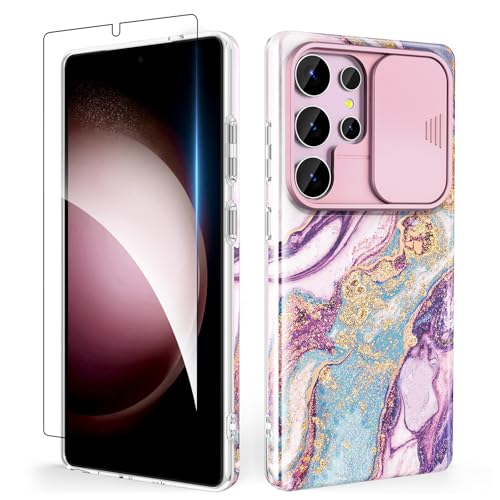 SHEDEER Coque pour Samsung S25 Ultra avec Coulissante Protection de la Caméra& Verre Trempé,Coque S25 Ultra 3D Motif Double Face,360 Protection Anti Choque,Meteor Shower Violet