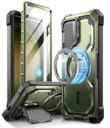 i-Blason [Armorbox Coque pour Samsung Galaxy S24 Ultra 5G (2024), Protecteur d’Ecran et Protecteur de Caméra Intégrés, Antichoc Intégrale 360° Protection (Vert)