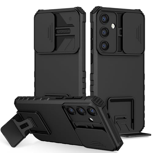 Coque pour Samsung Galaxy S24 / S25, Protection de la Caméra Étui avec Lentille Coulissante Couverture, 360 Full Body Armor et Antichoc Durable Protecteur Bumper Support stéréo Housse Étui-Noir