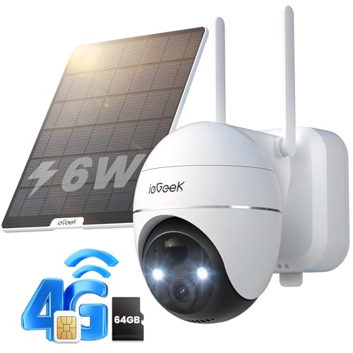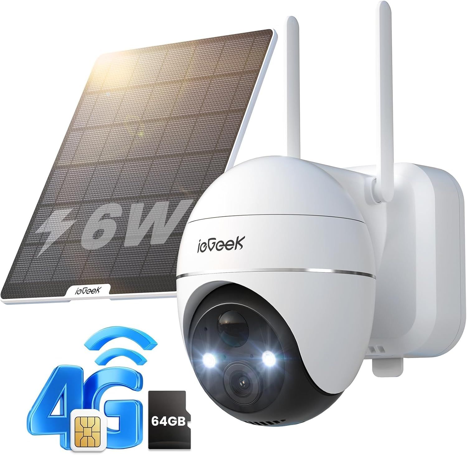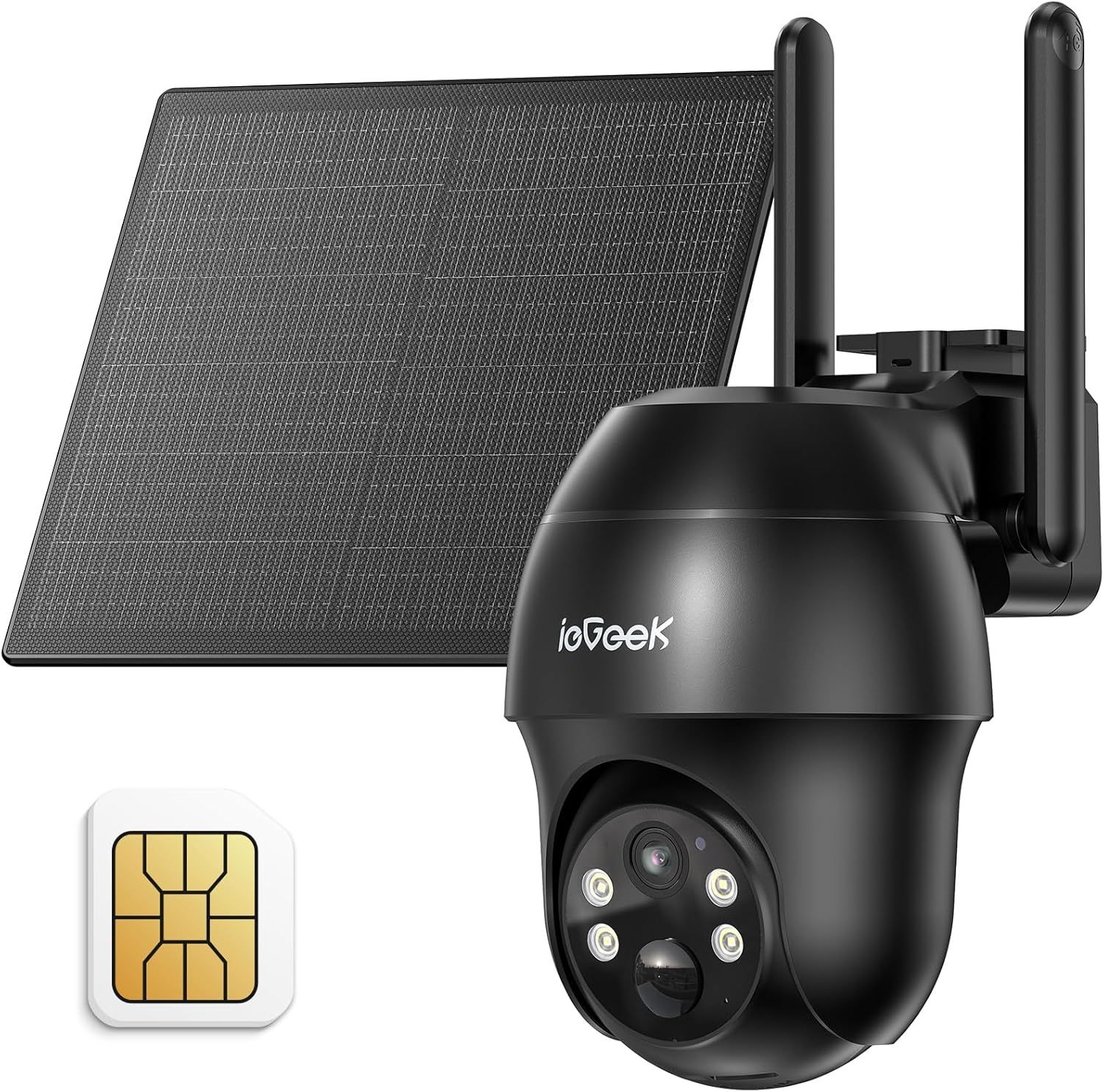 ieGeek 4G Camera Exterieur sans Fil Solaire,Camera Surveillance sans WiFi,Batterie 10 000 mAh,SIM intégrée,Détection PIR,Vision Nocturne Couleur,360°/120° orientable,IP66(NO WiFi)
