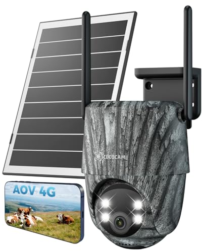 COCOCAM 24/7 AOV 4G Camera Surveillance Exterieur Sans Fil, Camera Chasse Avec Animaux Détection, 30m 2K Vision Nocturne, IA Détection, 15000mAh Batterie & 8W Panneau Solaire, eSIM Incluse (Sans WIFI)