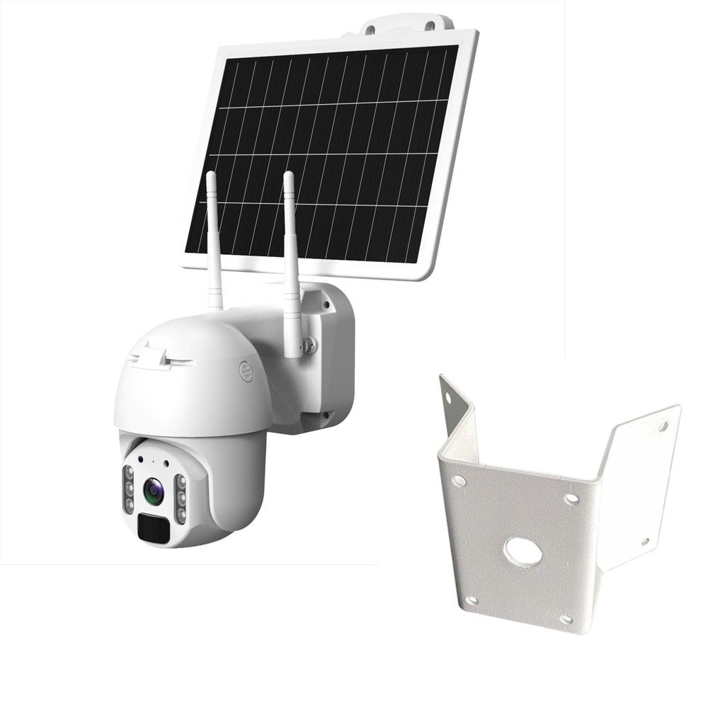 Camera 4G extérieur motorisée FULL HD 1080P solaire blanc, vision 92° IR, contrôlable à distance + support pour angle droit, nano SIM 300Mo offert