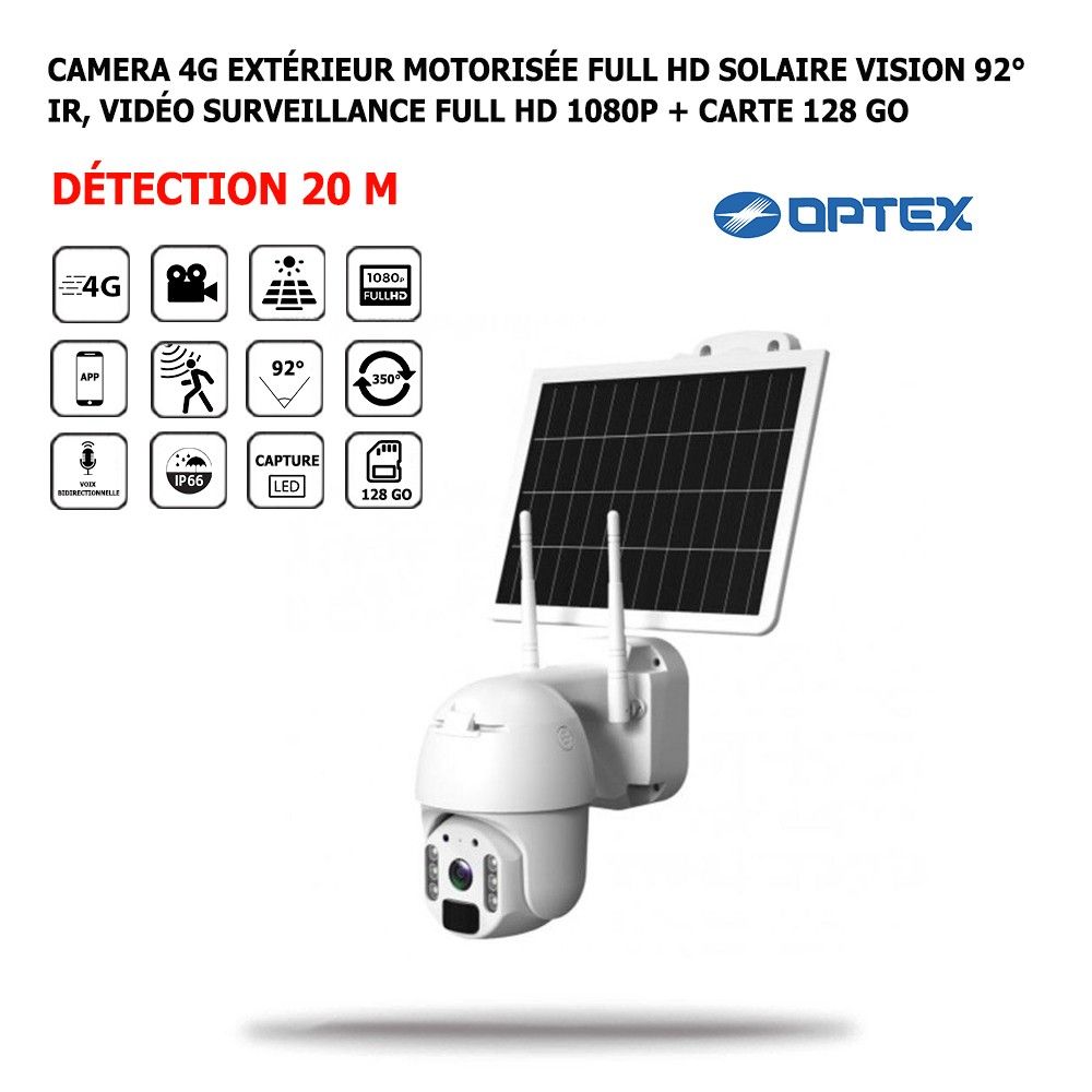 Camera 4G extérieur motorisée FULL HD 1080P solaire blanc, vision 92° infrarouge, contrôlable à distance + nano SIM 300Mo offert