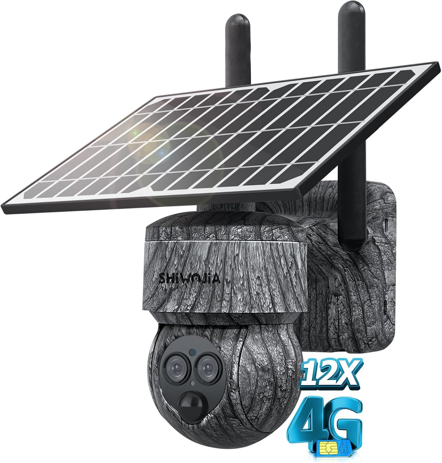 Zoom Hybride 12X,6Mp Ptz Camera 4G Solaire Avec Double Objectif,360° Camera Exterieur Batteries,Camera Solaire Vision Nocturne,Détection Humaine,Audio Bidirectionnel