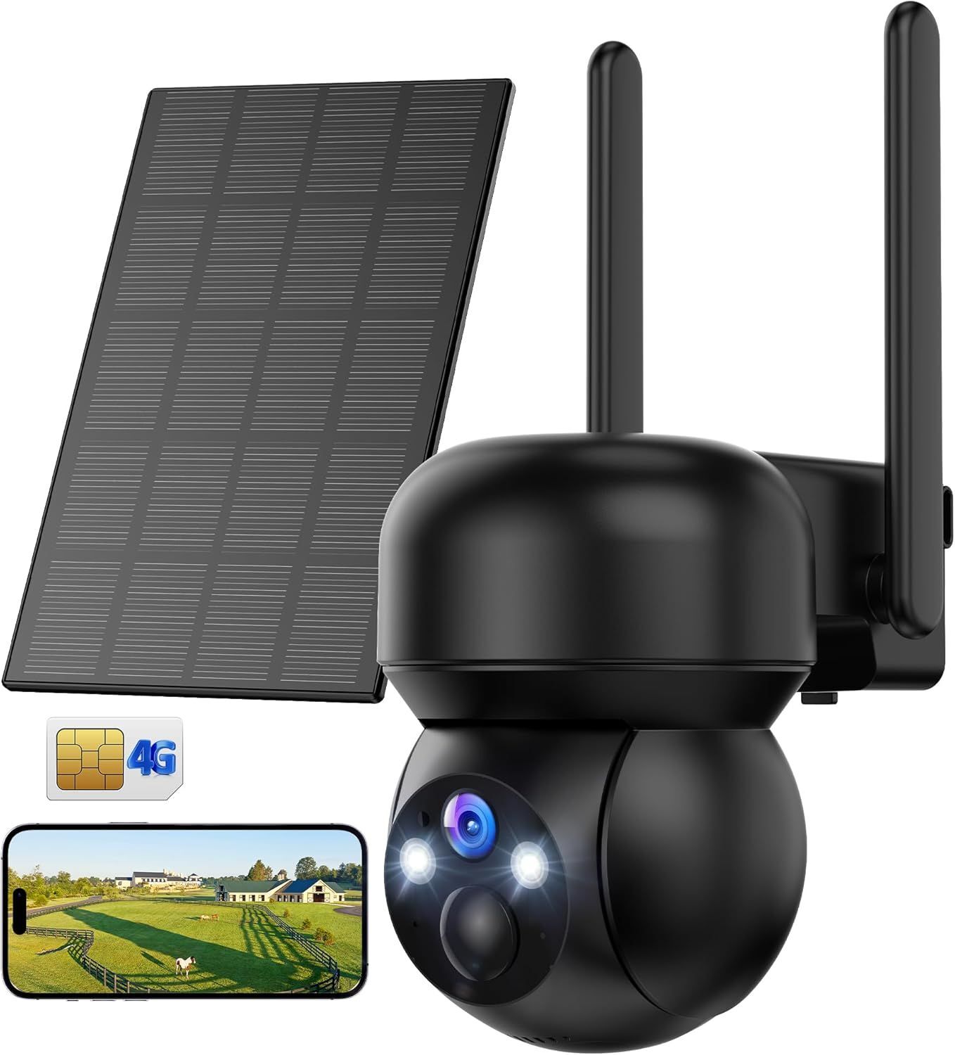 SUBZONAL-4G LTE Camera de Surveillance Exterieur sans Fil, 2K HD Camera Solaire avec Carte SIM sans WiFi, Vision Nocturne, Détection Humaine PIR, Audio Bidirectionnel, AI Analysis System/Cloud