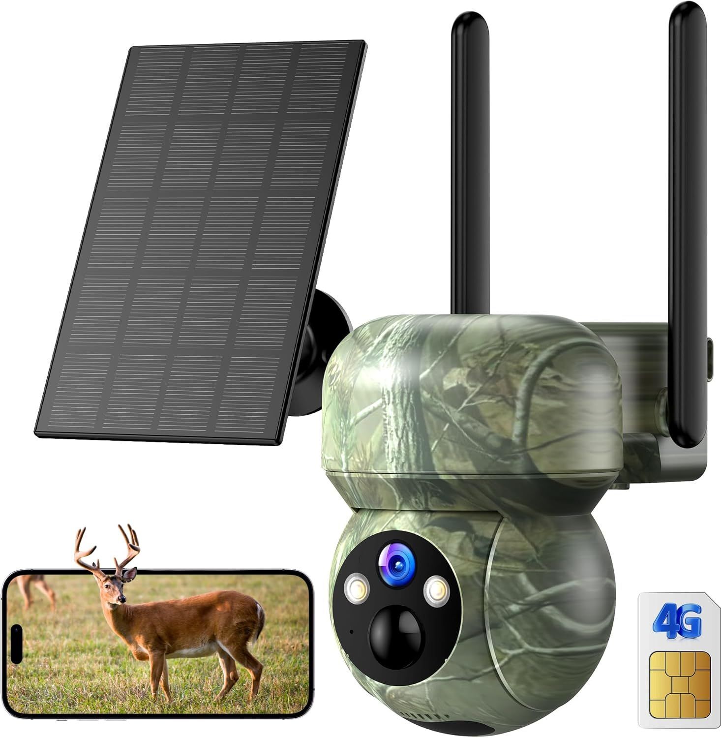 Tzziel Camera Chasse 4G avec Carte Sim,Camera de Surveillance Exterieur Video en Direct,2K Vision Nocturne Couleur, Détection de Mouvemen PIR,Audio Bidirectionnel,IP66