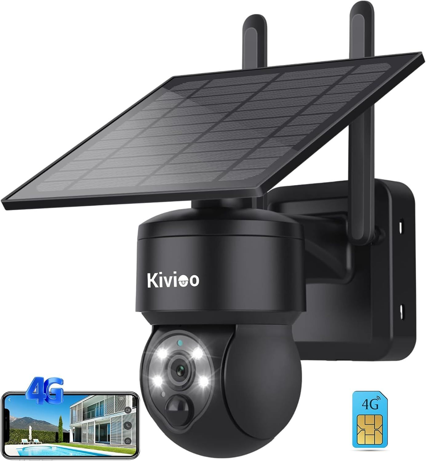 KALANKA-4G LTE Caméra Exterieur Filaire, 24/7 Enregistrement Caméra avec Carte Sim, 2K HD PTZ, Détection Humaine Suivi Automatique Vision Nocturne Colorée, Audio Bidirectionnel Camera sans WiFi IP66