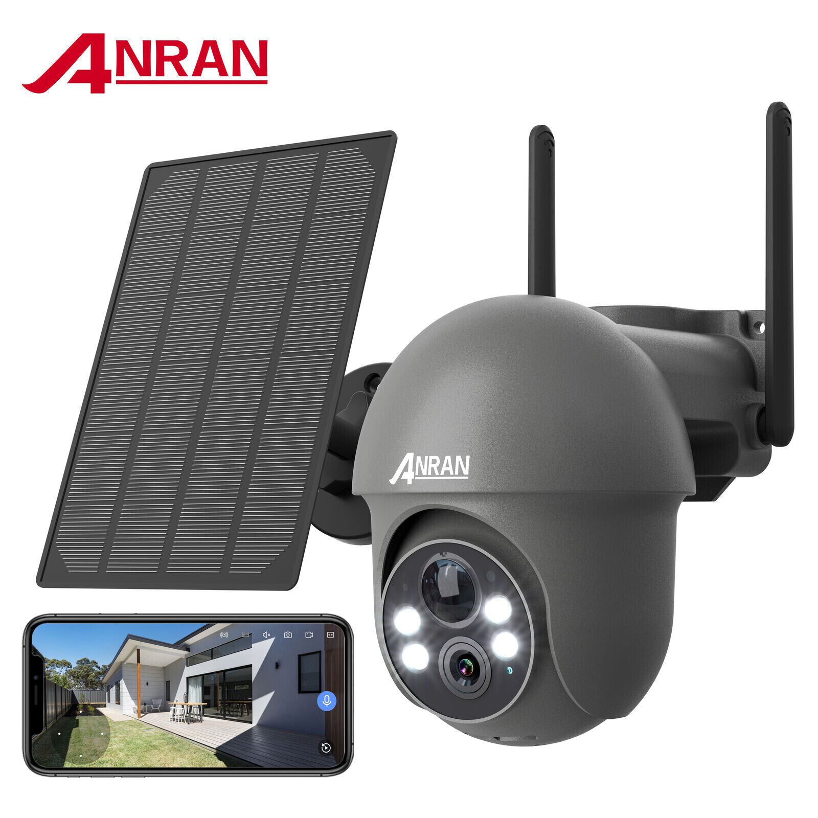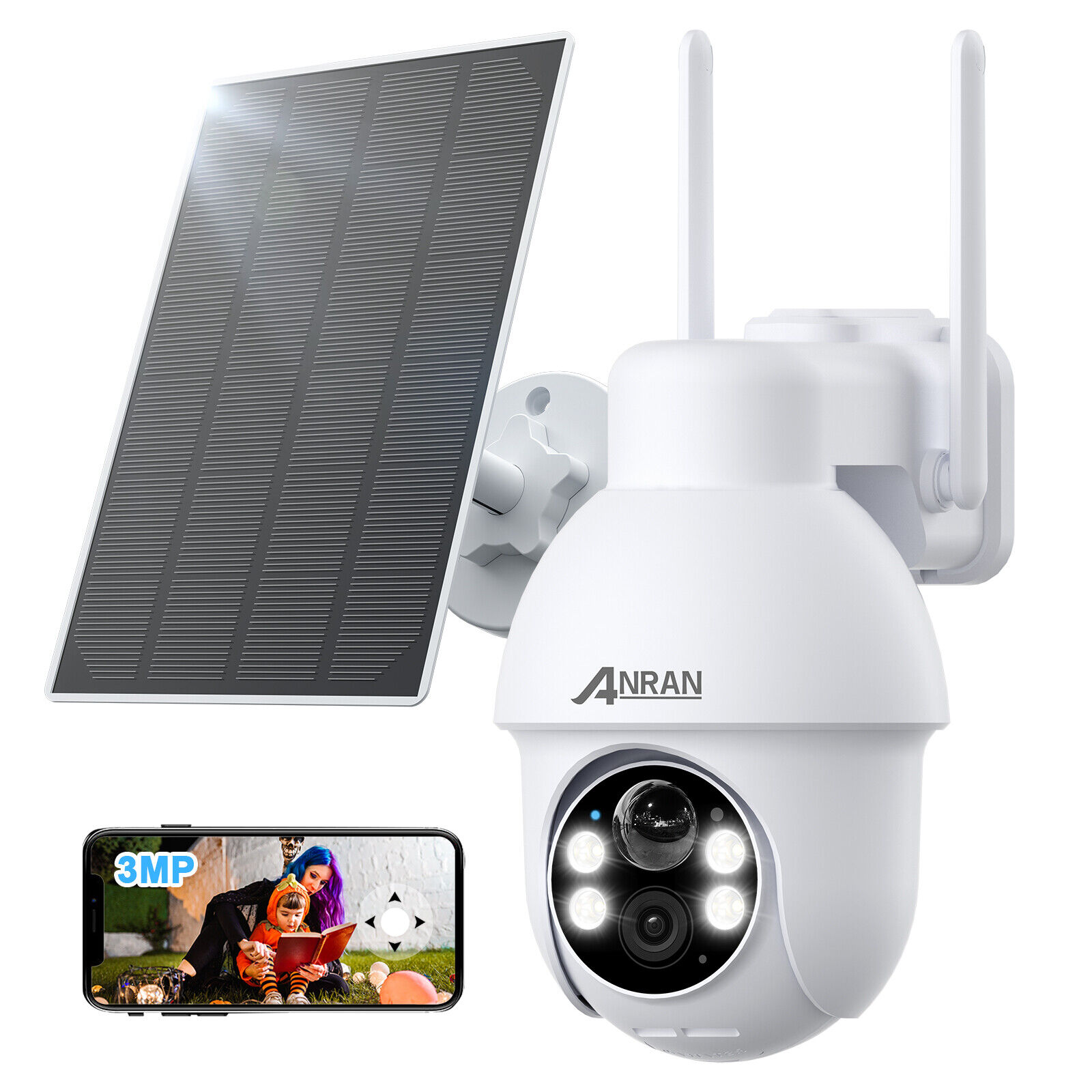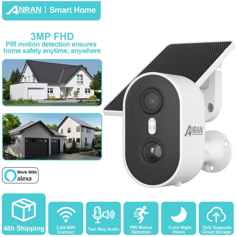 ANRAN Caméra de Surveillance extérieure sans fil 3MP Wifi 2.4GhzCamera batterie avec panneau solaire