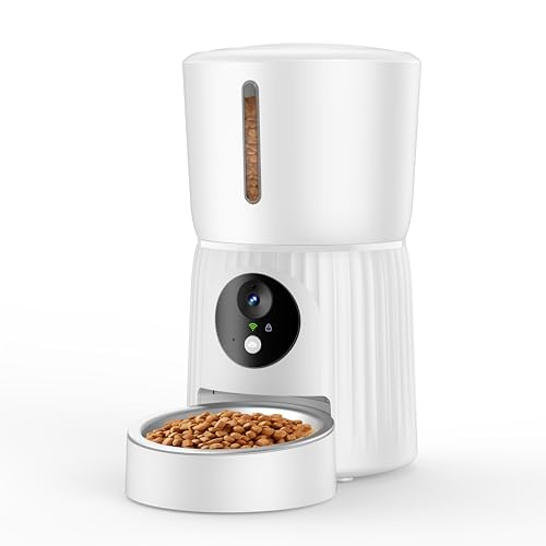 Faroro Distributeur Croquettes Chat Automatique, Caméra HD 1080P avec Vision Nocturne, 5G WiFi Mangeoire pour Chat/Chien avec Audio Bidirectionnel, APP, Caméra Basculante et Double Alimentation