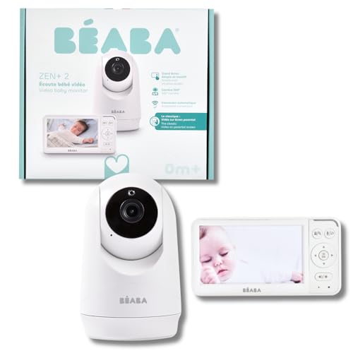 BÉABA, Babyphone Camera Zen Plus 2 – Caméra Rotative 360°, Écran 5 Pouces HD, Vision Nocturne, Talkie-Walkie, Thermomètre, 8 Berceuses, Portée 300m, Autonomie 20h, 4 Caméras Connectables, Blanc