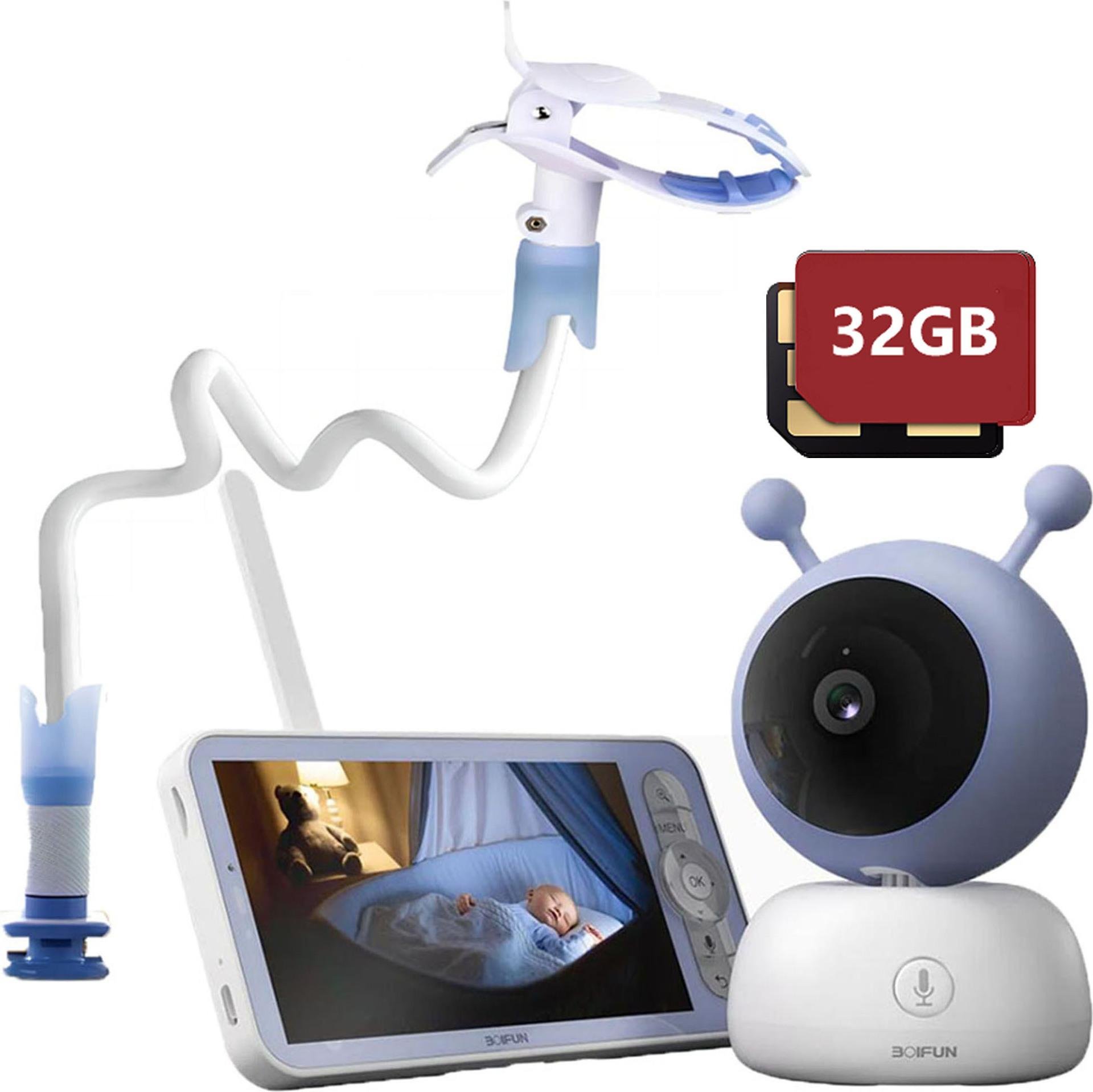 Moniteur pour bébé BOIFUN 5" avec caméra PTZ 1080P, surveillance de la température et de l'humidité, APP, détection de mouvement, détection des pleurs et rappel de repas, 32GB