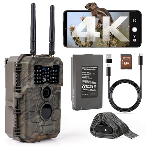 GardePro X50 Caméra de Chasse 4G LTE avec Carte SIM et APP, Vidéo H.265 48MP, Vision Nocturne Infrarouge No-Glow de 30 m, Détecteur de Mouvement 0,1 s et IP66 Étanche