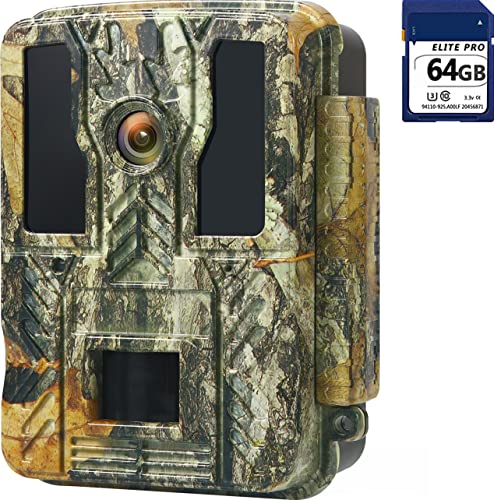 Carehabi Caméra de Chasse 24 MP 4K avec Carte mémoire SD U3 64 Go 46 LED IR 940 nm 28 m Vision Nocturne Vision Nocturne IP67 Étanche 0,2 s déclencheur Rapide pour caméra d'animaux Sauvages