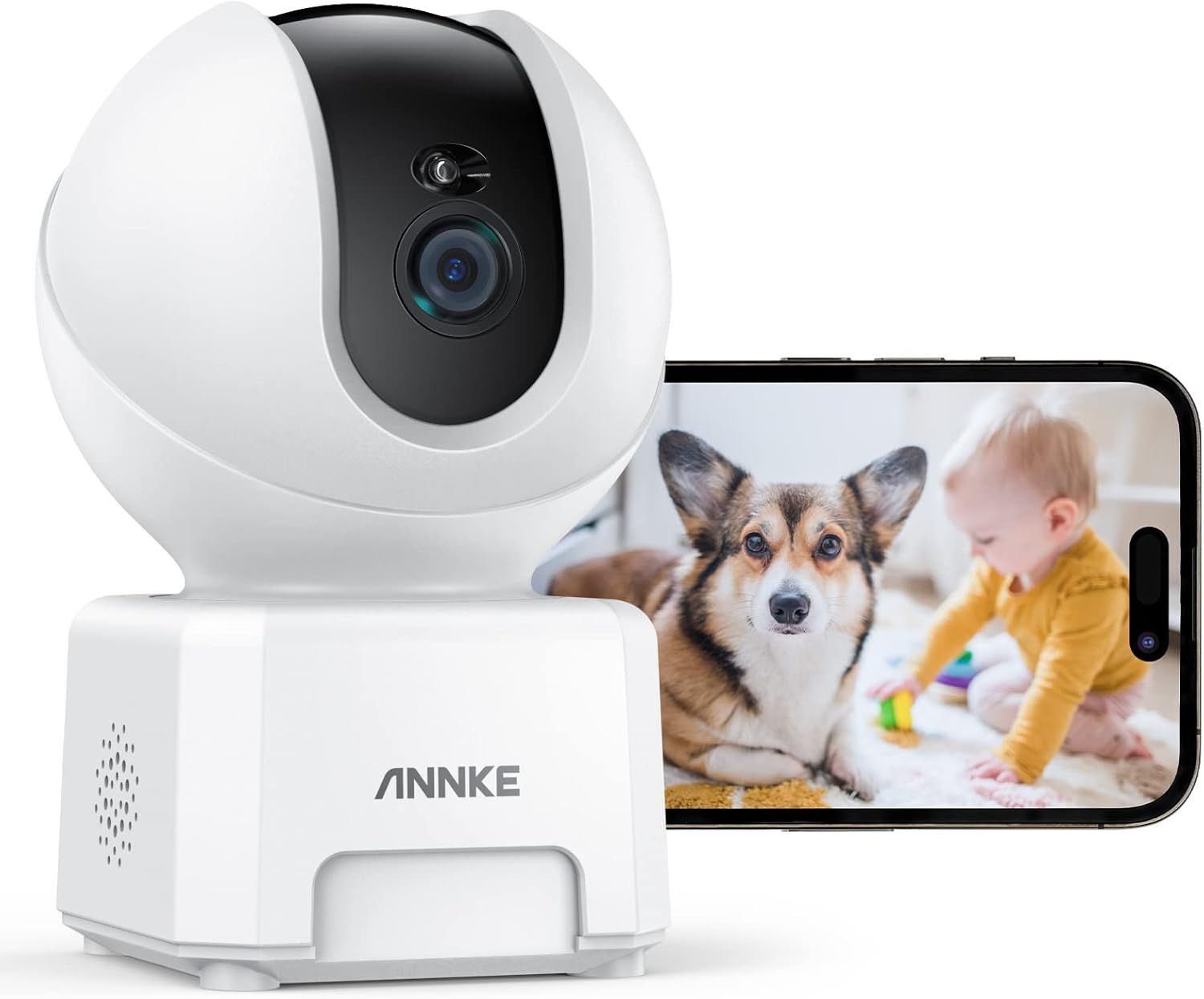 2.5K Caméra Surveillance WiFi Intérieure, Appel à Une Touche, Connectée Smartphone Détéction de Personne/Animal
