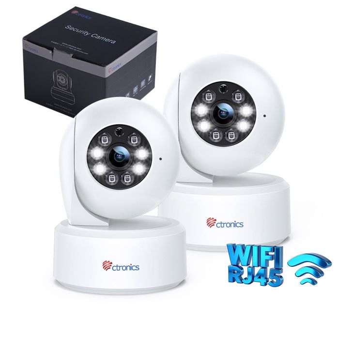 Lot de 2 PTZ Caméra Surveillance 4MP CTRONICS Intérieur 24/5Ghz WiFi 360° Caméra Connectée Smartphone pour Bébé Détection Humaine