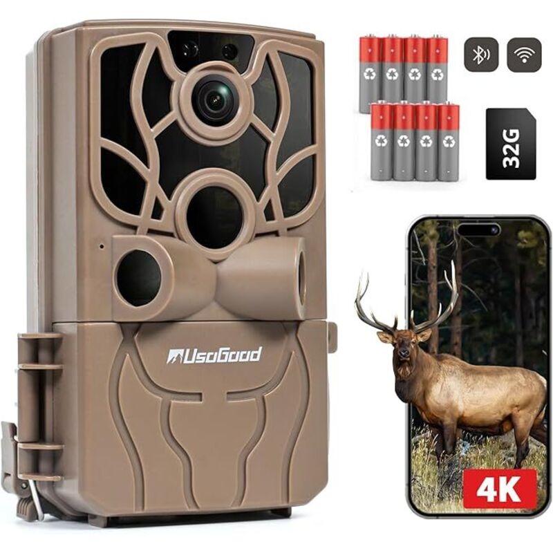Usogood Caméra de sécurité extérieure 48MP 4K, caméra connectée WiFi Bluetooth pour smartphone, surveillance extérieure, détection de mouvement PIR,