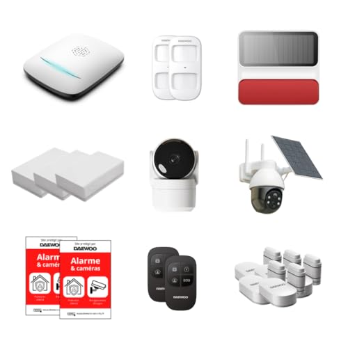 Daewoo Security - Pack Alarme Maison Connectée WiFi & GSM – Système Sécurité sans Fil avec Caméra HD, Sirène Extérieure Solaire, Détecteurs Zigbee & Compatible Animaux – sans Abonnement