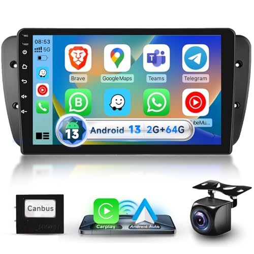 Podofo Autoradio 2G+64G pour Seat Altea 2004-2015, écran Tactile 9 Pouces Android 13.0, Radio avec CarPlay sans Fil, Android Auto, DSP/BT/GPS/rétroviseur/FM/RDS/USB/Caméra de recul