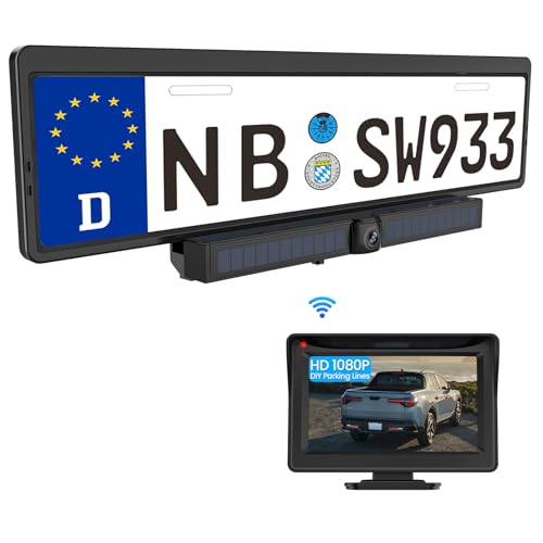 Foxpark Solaire Camera de Recul sans Fil: Installation Facile en 3 Minutes, avec HD 1080P Moniteur 5 Pouces, Étanche IP69K Vision Nocturne Claire Nocturne Caméra de Recul pour Auto,SUV, Camion,Van