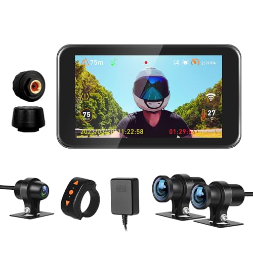 VSYSTO Dashcam Moto Caméra de Moto WiFi Camera Moto Double Lentille 1080P Caméra Avant et arrière DVR Moto Écran LCD 4,5 '' Grand Angle 170 ° Caméra de Sport étanche avec GPS, TPMS, caméra Selfie