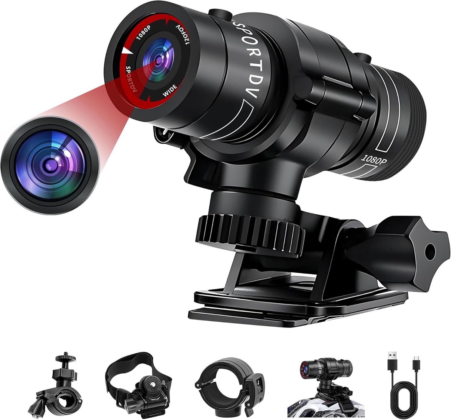 Jadfezy Camera Sport avec Carte mémoire 32gb,HD 1080p caméra Sport,de Camera Moto d'action avec 2 Piles 1350mah et Plusieurs Accessoires