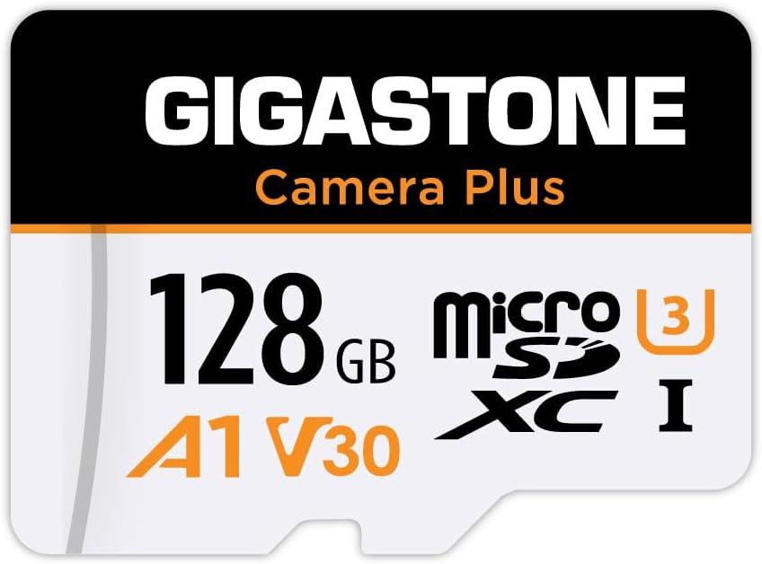 [GIGASTONE] Carte Micro SD 128Go, Camera Plus, GoPro, caméra d'action, caméra de Sport, Haute Vitesse 100 Mo/s, Enregistrement vidéo 4K, Carte mémoire MicroSDXC UHS-I A1 V30 U3 Classe 10