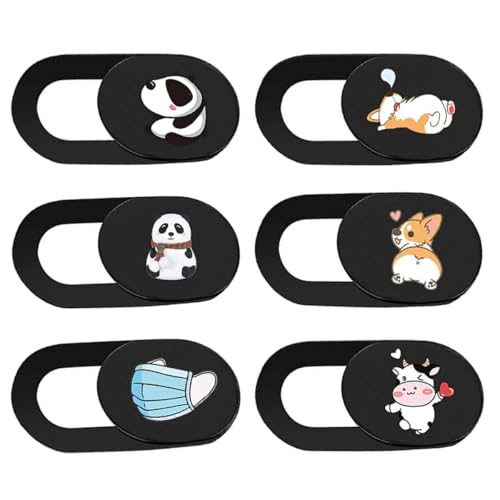 Lurrose Lot de 6 Cache-webcams Coulissants Ultra-Minces en Plastique pour Ordinateur Portable et Tablette, Protection Discrète Caméra, Compatible Pc, Motifs Animaux Cartoon