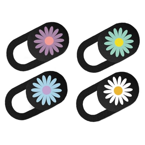 Hoement Cache Webcam Coulissant à Motif Marguerite 4 Pièces pour Ordinateur Portable et Tablette, Protection de Vie Privée Ultra-Mince Adhésive, Couverture de Caméra Discrète et Légère,