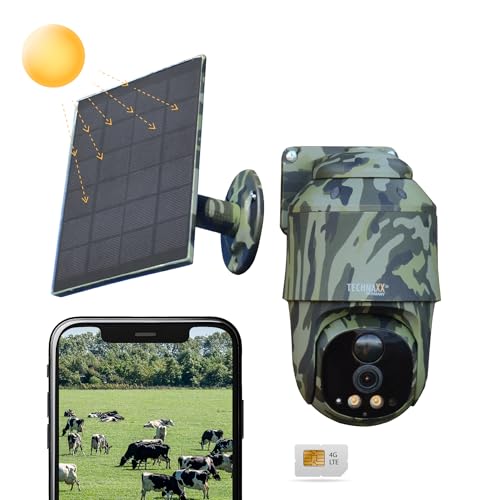 Technaxx Caméra de sécurité d'extérieur 4G PT Dome TX-290 avec Panneau Solaire 5 W – PTZ 360 °, vidéo Full HD 4 MP, Vision Nocturne, détection de Mouvement PIR, IP65, Audio bidirectionnel