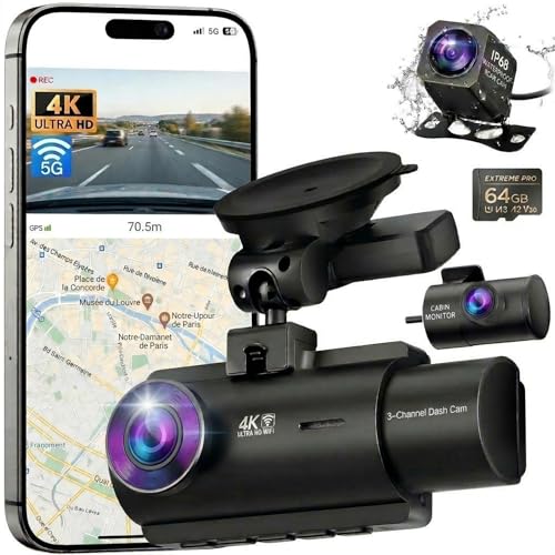 Dashcam Voiture Avant Arriere: 4K+2K 5G WiFi Camera Voiture Embarquée - Écran HD 3 avec App Contrôle Carte SD 64G Vision Nocturne