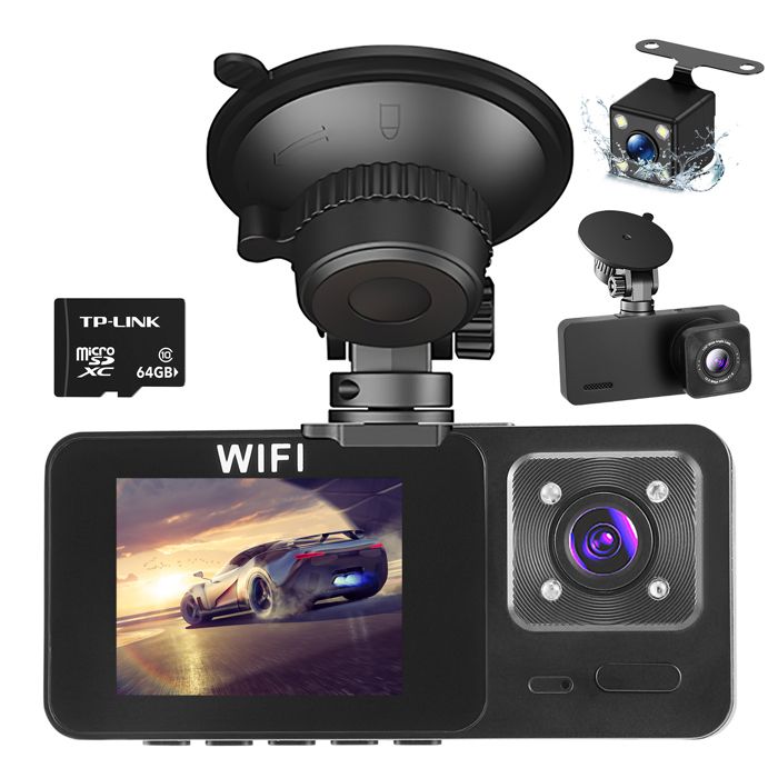 TTLIFE Dashcam Voiture Avant Arrière Camera Voiture avec Carte SD 64G WiFi et APP GPS Camera Embarquée Voiture Dash Cam