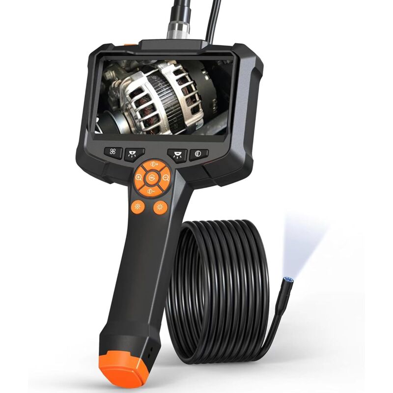 Caméra Endoscope Industriel Double Objectif,Endoscope Industriel à Ecran ips 5' Pouces, Caméra Endoscopique avec 6 led Réglables, Caméra Etanche IP67