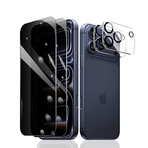 Fylnatc 2×Anti-Espion Verre Trempé pour iPhone 17 Pro + 2×Protection Camera Objectif Arriere appareil Photo, Privacy Film de Protection écran Anti-Spy, Dureté 9H Glas, Anti Rayures, Sans Bulles