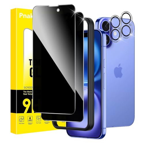Pnakqil Verre trempé pour iPhone 16 Anti Espion avec Protecteur Camera,Privacy Protection Ecran pour iPhone 16 Dureté 9H avec Outil d'Installation Facile Confidentialité Anti Spy Vitre Film,2+2 Pièces