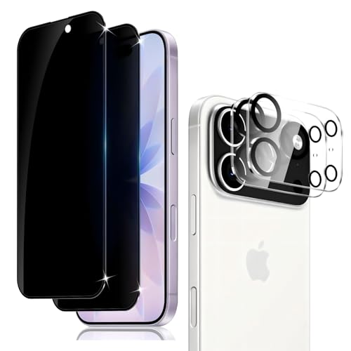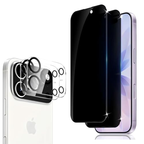 Fylnatc 2×Anti-Espion Verre Trempé pour iPhone 17 + 2×Protection Camera Objectif Arriere appareil Photo, Privacy Film de Protection écran Anti-Spy, Dureté 9H Glas, Anti Rayures, Sans Bulles