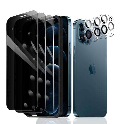 3×Anti-Espion Verre Trempé pour iPhone 12 Pro Max + 3×Protection Camera Objectif Arriere appareil Photo avec Outil d'Installation Facile, Privacy Film de Protection écran Anti-Spy, Dureté 9H Glas