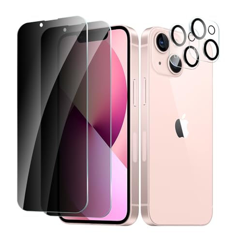 CYYAGE 2 Pièces Protection Écran Verre Trempé pour iPhone 13 Anti-Espion avec 2 Pièces Protecteur d'objectif de Camera, Vitre Protection Film Dureté 9H Glass, Anti Rayures
