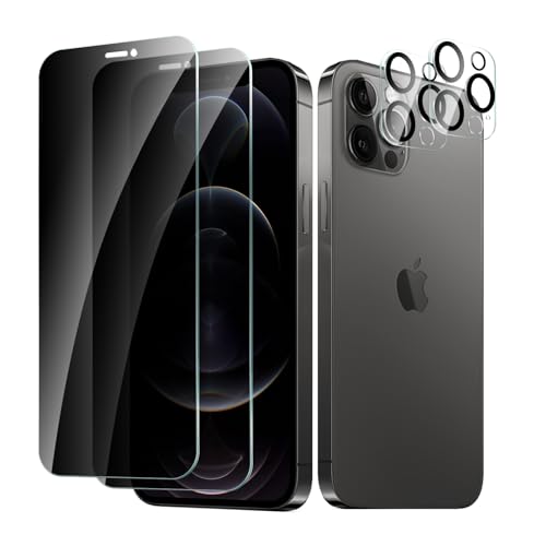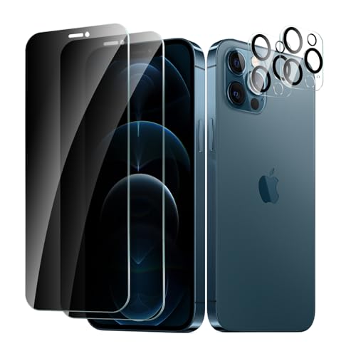 CYYAGE 2 Pièces Protection Écran Verre Trempé pour iPhone 12 Pro Anti-Espion avec 2 Pièces Protecteur d'objectif de Camera, Vitre Protection Film Dureté 9H Glass, Anti Rayures
