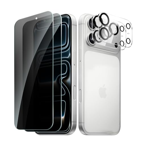 Fylnatc 2×Anti-Espion Verre Trempé pour iPhone 17 Pro Max + 2×Protection Camera Objectif Arriere appareil Photo, Privacy Film de Protection écran Anti-Spy, Dureté 9H Glas, Anti Rayures, Sans Bulles