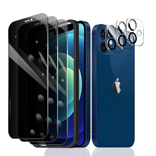 3×Anti-Espion Verre Trempé pour iPhone 12 Mini + 3×Protection Camera Objectif Arriere appareil Photo avec Outil d'Installation Facile, Privacy Film de Protection écran Anti-Spy, Dureté 9H Glas