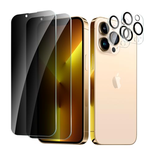 Fylnatc 3×Anti-Espion Verre Trempé pour iPhone 13 Pro + 3×Protection Camera Objectif Arriere appareil Photo avec Outil d'Installation Facile, Privacy Film de Protection écran Anti-Spy, Dureté 9H Glas